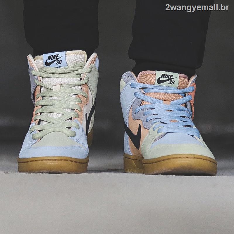 Compre Nike Sb Dunk no Mercado Livre com Frete Grátis a partir de R79. Asymmetrical color blocking distinguishes the left and right shoe both of which are finished in a mix of powder blue lime green and coral hues. Tênis Nike Dunk Low SE Masculino.